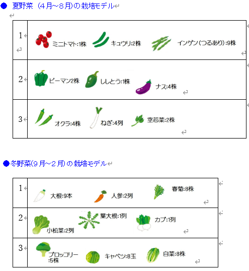 ③それぞれの畝にこのような野菜を育てます。